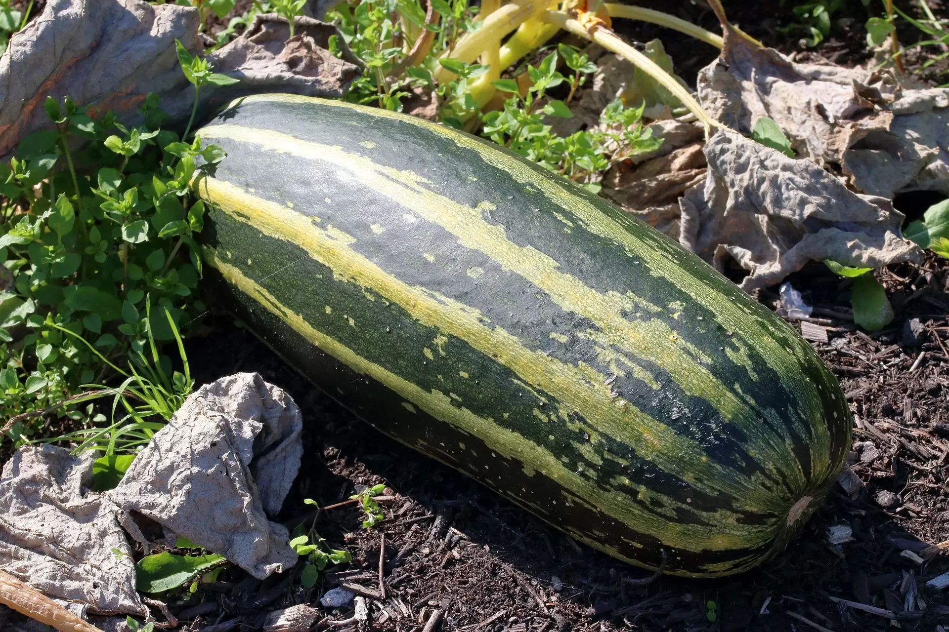 If you find the leaves turning yellow, it is best to remove them by pinching off the base, so that the fruit gets adequate exposure to sunlight. It also makes it easier to spot when the marrow is ready to be picked.